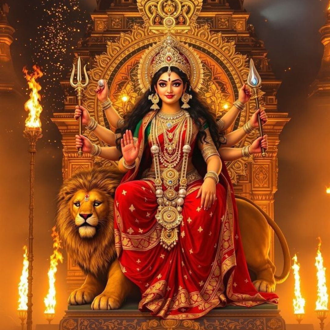 Durga Saptashati glorifies Goddess Durga’s victories over evil, symbolizing divine power and protection.