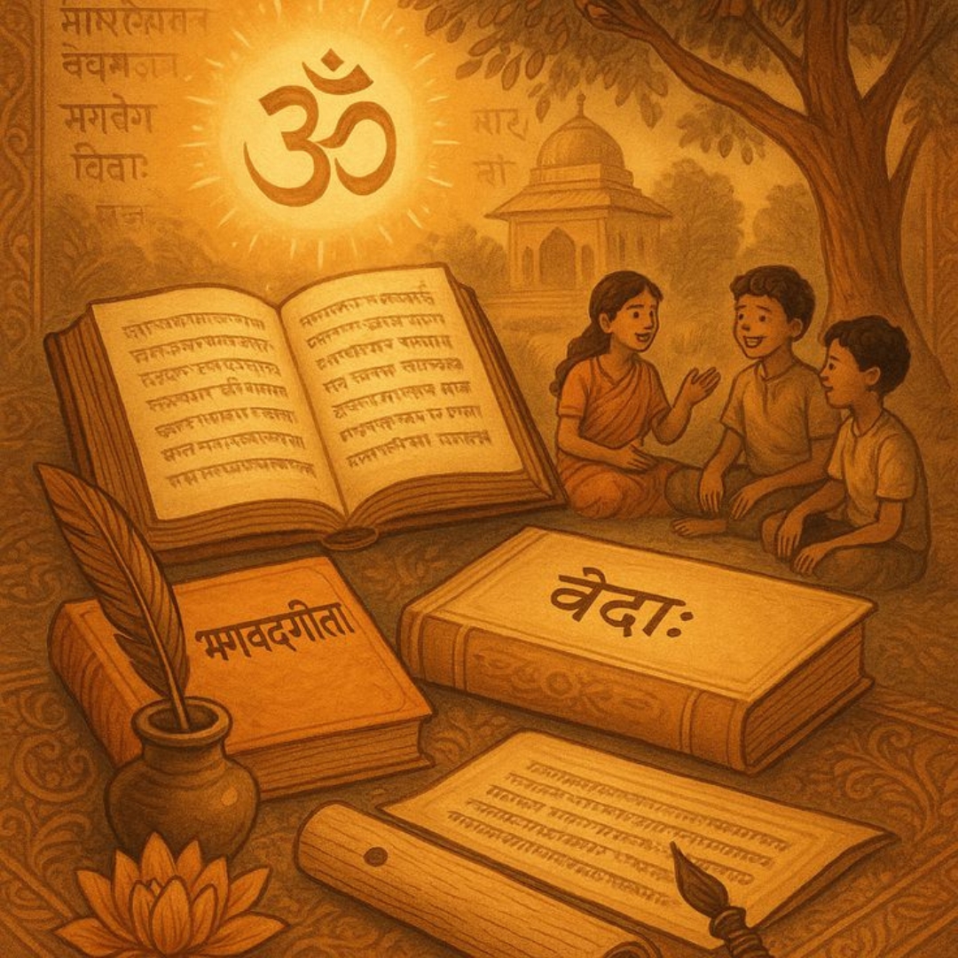 Sampoorna Mahabharata narrates the epic’s complete story, teaching dharma, karma, and life’s profound truths.
